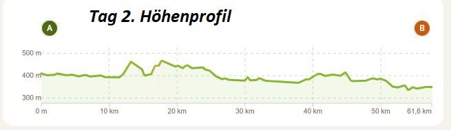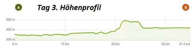 Über die gesammte Etappe ist ein Höhenunterschied von ca.350m nach oben und ca.420m nach unten zu überwinden. In Roth werden Sie wieder von Ihrem Bus erwartet, der Sie nach der Verladung der Räder zum Hotel bringt.